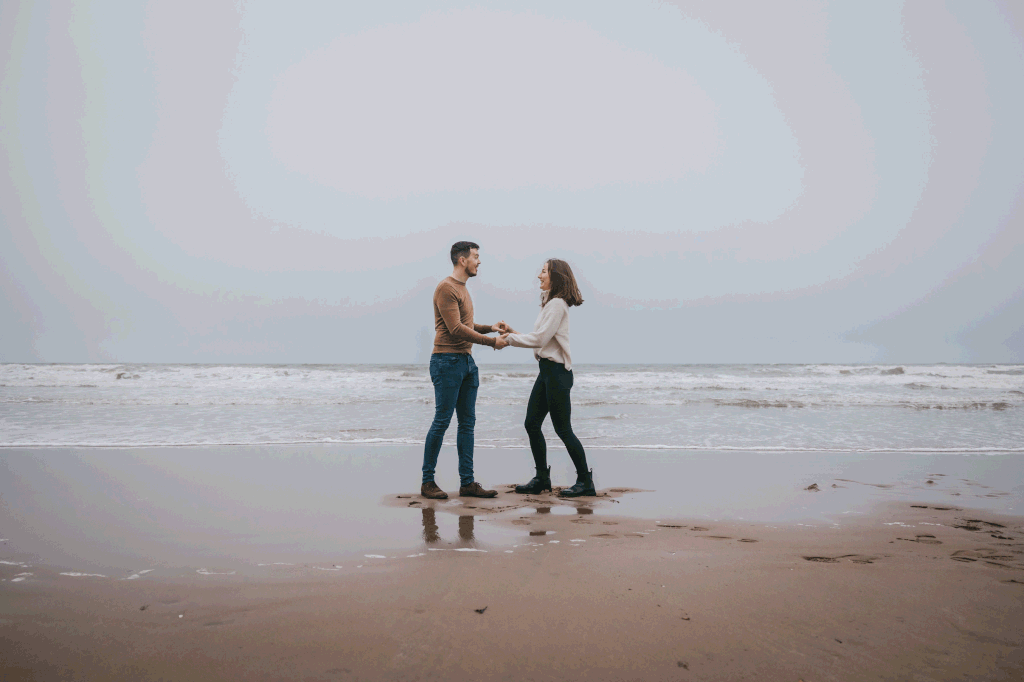 Atmospheric foggy beach engagement shoot - St. Cyrus
