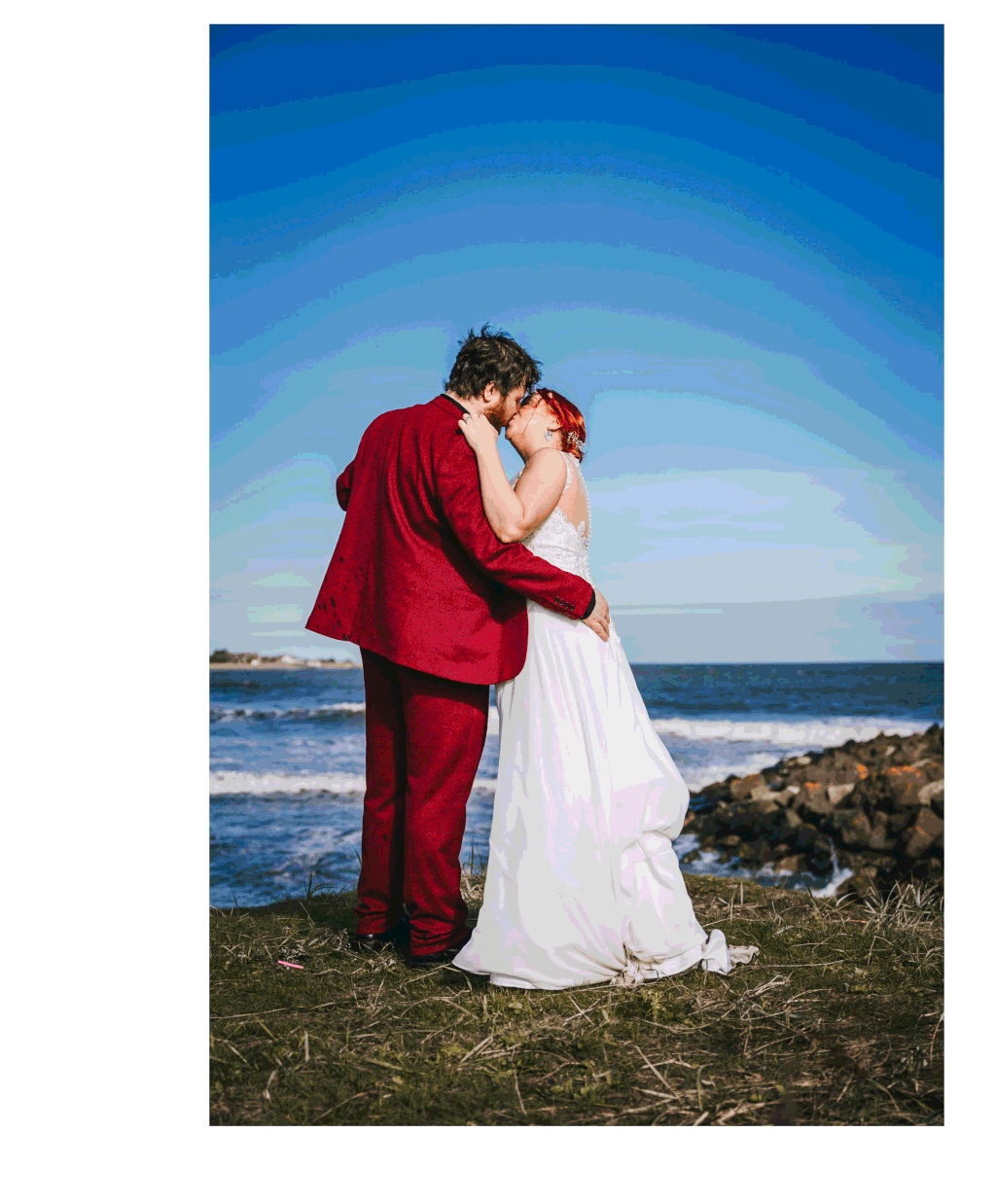 Just married! Out into the most beautiful sunshine with gorgeous views all around. Celebratory drinks flowing, We did a quick group photograph straight into the drone flyaway. This was then followed by a series of family formals and a quick trip to the beach… They got some amazing photos beside a now stormy sea! And didn’t mind getting splashed!!!